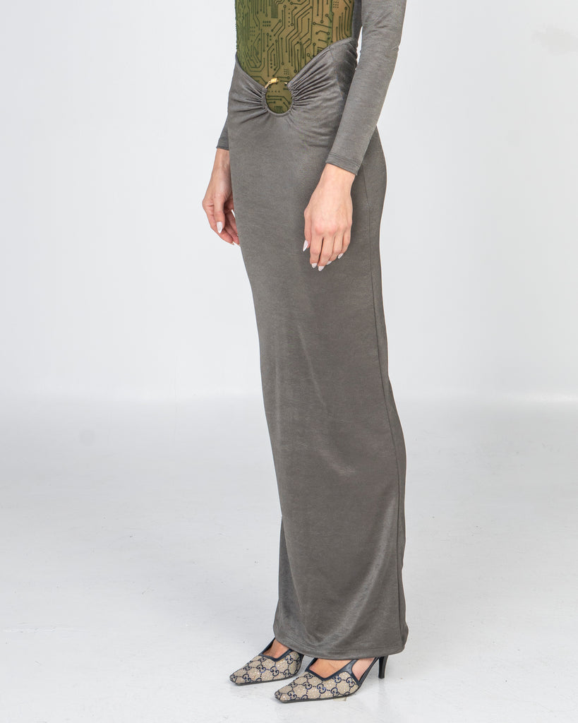 Floor-length column silhouette